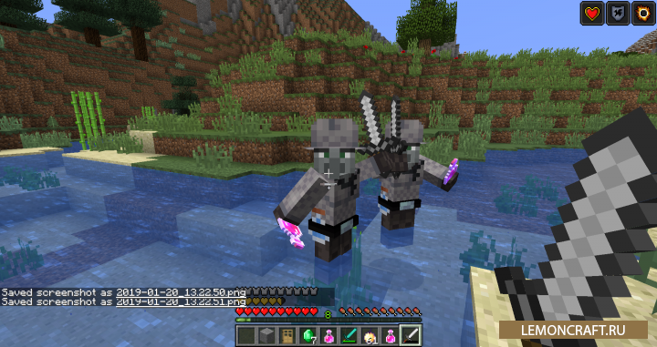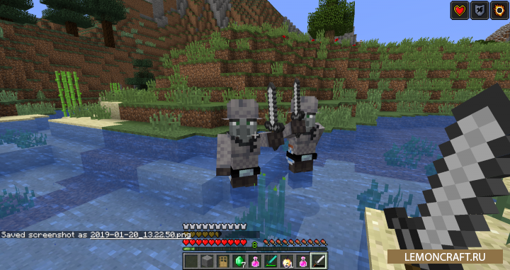 Мод на стражей Guard Illagers добавит в игру новых персонажи - стражей, который будут спавниться в лесном массиве. Данные мобы будут иметь в своем арсенале железный меч и два типа зелий: ускорение и лечение. Особой угрозы они не несут, но все же будьте внимательны. Охраняя свою лесную территорию, эти стражи готовы пойти на все, что бы не пропустить вас туда.