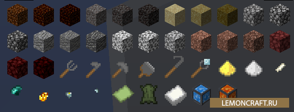Мод на дополнительные инструменты Resourceful Tools добавляет в игру новые инструменты с помощью которых вы сможете разрушать обычные блоки (листья, траву, магму, гравий, песчаник), получая при этом новые и ванильные предметы. Например в глине в сможете обнаружить чернильный мешок, в гравии попадаются фрагменты костей, в эндерняке вы найдете звезды края, в листьях - яблоки, перья и веревки.