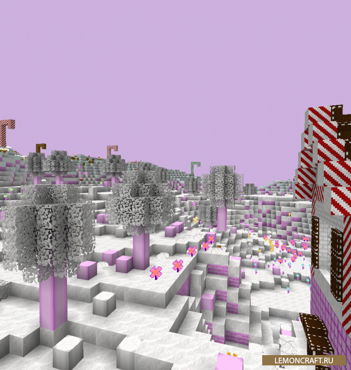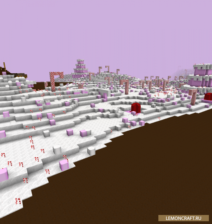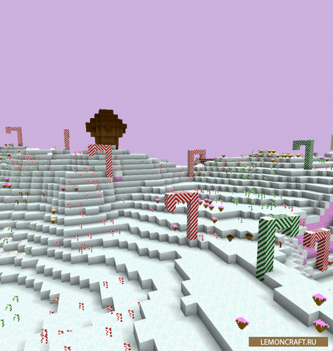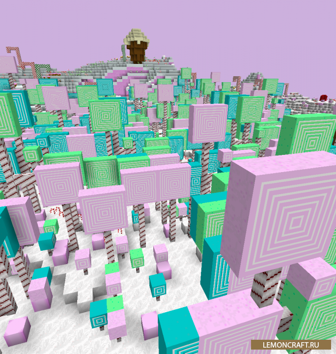Мод на конфетную страну Candylands перенесет вас в мир сладостей, где вы встретите новых мобов, попадете в джунгли из леденцов, окунетесь в шоколадные океаны, увидите карамельные водопады и вулканы с джемом.